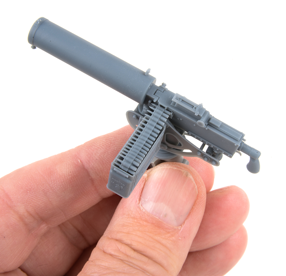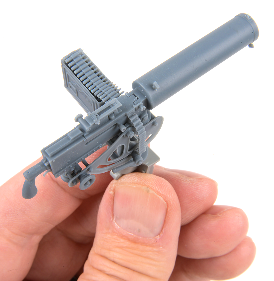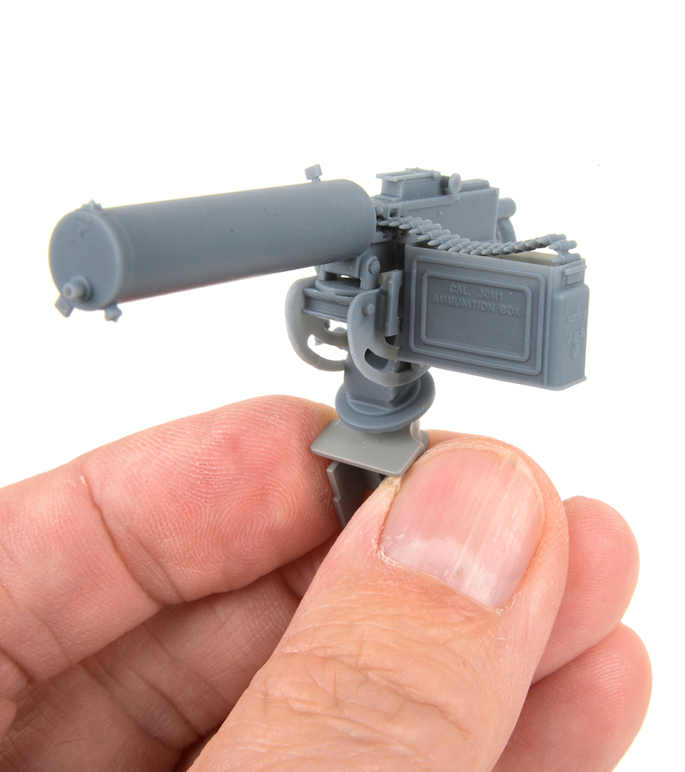 3D printed set of 1x 50 Cal and 2x 30 Cal Machine Guns with the water cooled barrel sleeves to upgrade the vehicle weapons. The set contains our existing guns but the 30 Cals now feature pivotable 1917 pattern cradles for a more realistic appearance. This package set price means that you are getting the two 30 Cals for the cost of one.