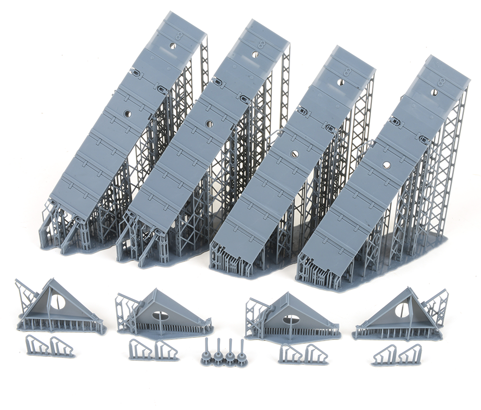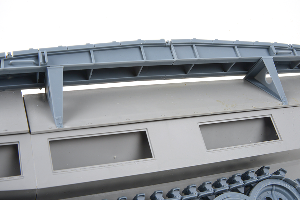 Designed to fit the Das Werk Sd.Kfz.251 kits this 3D printed set provides the supports for the hull sides, requiring the removal of 4 bolts from the side armour to locate these brackets making it extremely easy to fit. The Bridge itself accurately replicates the real thing with the correct hollow underside detail and 8 ton weight limit on the ramps at each end. The bridge is printed in two parts which simply interlock for a self-supporting assembly. The bridge sections in our photos are both dry fitted with no glue used. Separate locking clamps are supplied to mount the bridge onto the support frames.
