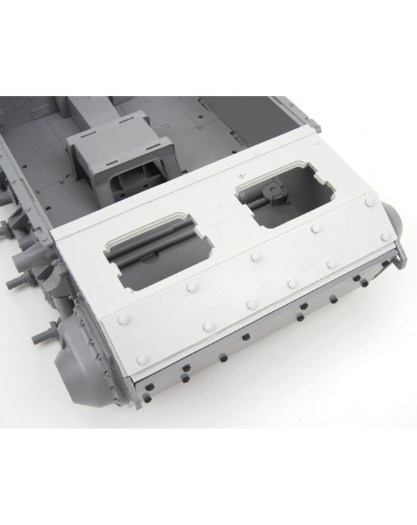 Replacement bow plate to correct the armour plates of the appliqué armoured nose. Requires the modeller to cut away the top edge of the kit glacis plate then drop in the replacement top bow plate. Any gap on the glacis is then covered by the glacis appliqué armour. Also includes replacement bolts to correct the remaining kit appliqué bolt head detail.