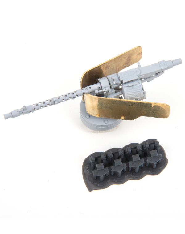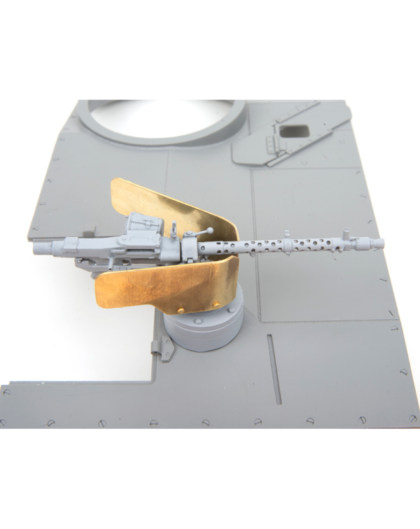 Detailed 1:16 STuG III remote control MG 34 mount. With hollow printed barrel sleeve and photo etched gun shields. Set also comes with x4 hatch hinges to swap the hatch position.