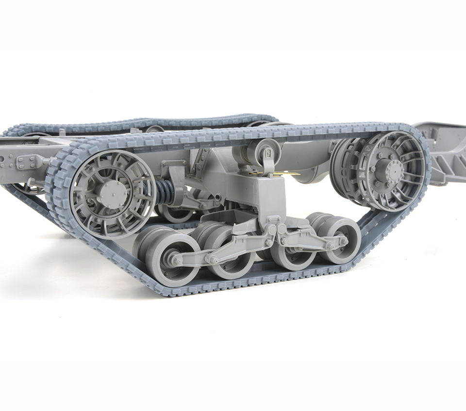 This set replaces the kit tracks for a more realistic appearance offering the taut appearance of the correctly tensioned tracks. These are 3D printed as a single piece to fit the kit bogies exactly. There is sufficient flex in the track to permit them to be fitted over the centre bogie but you will need your sprocket and idler wheels to be separate from the chassis in order to fit the tracks.