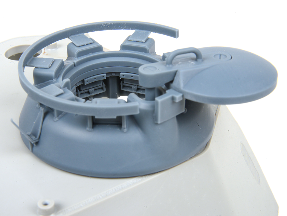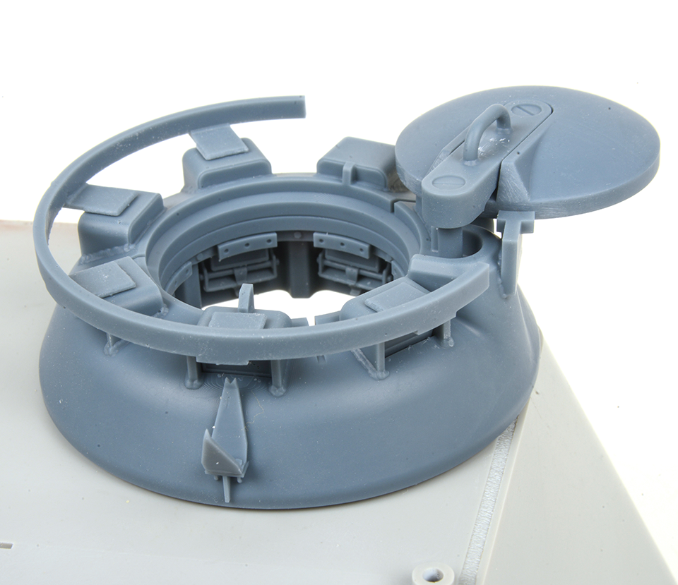 This 3D printed Panther Cupola upgrade with smooth external finish is designed for vehicle manufactured before July 1944 and has the initial style of periscope mounts which were prone to falling out under vibration or impacts and were therefore redesigned. With a variety of cast finishes seen on the cupola this version is smooth. Separate periscopes for easy painting prior to fitting them and casting numbers inside the cupola replicated. Our photos show pre-production examples. Smooth and Textured Early cupolas are identical apart from the exterior surface finishes.