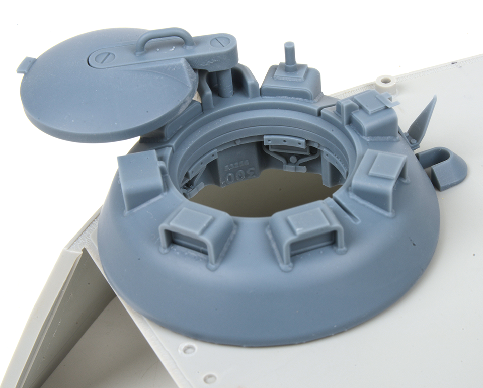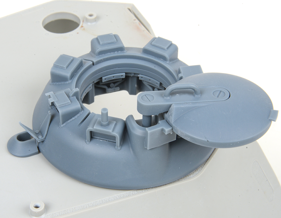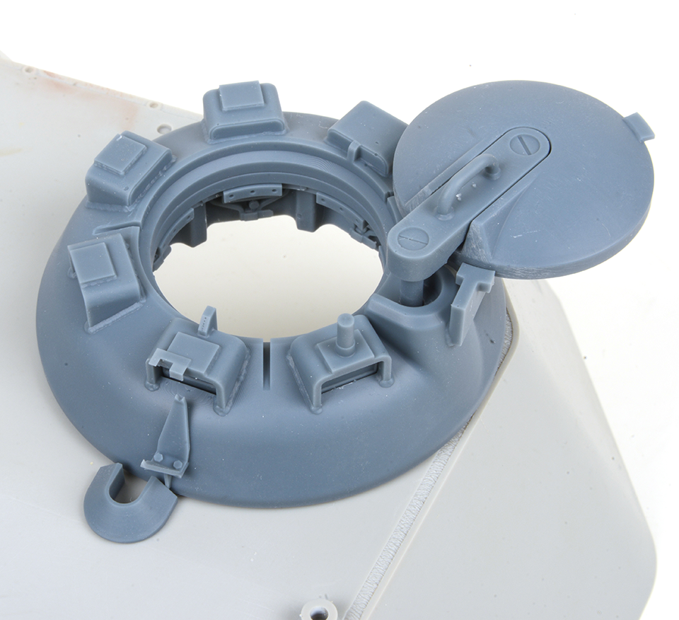 This 3D printed Panther Cupola upgrade with a smooth external finish is designed for vehicle manufactured after January 1945 and therefore the cupola ring is deleted and a new post welded on for the anti-aircraft mount. It also has the preparatory brackets for the Infra Red night fighting equipment. Separate periscopes for easy painting prior to fitting them and casting numbers inside the cupola are replicated.