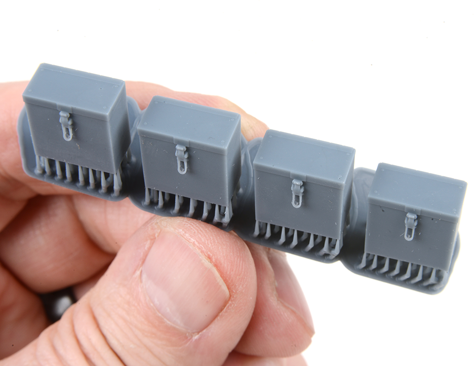 Standard equipment in all German Armoured vehicles these boxes were used to stow the crew Headphones and Throat Mics. These new 3D printed boxes replace our previous cast resin versions and come in a set of 4 boxes as vehicle Loaders were normally not part of the intercom system because it restricted their movement too much.